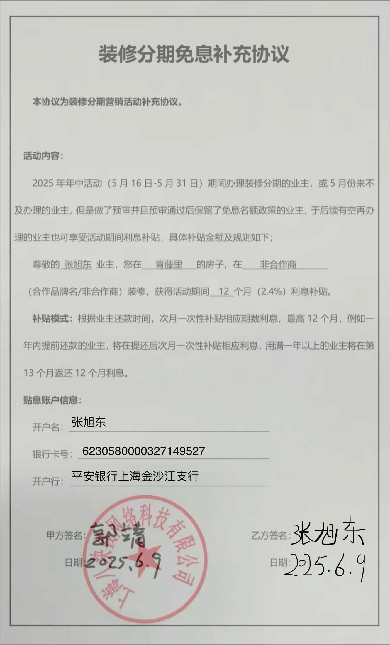 目前使用的是建行的装修贷 联系人: 郭靖 联系方式: l13020199387 (微信号) 13020199387(手机号) 装修贷卡 总额度 40 万 利息 月息 0.2% 年2.4% 最高分期 60 个月(5 年)